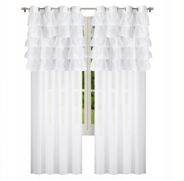 Biała firana dekoracyjna z falbanami na kołkach przelotki 145×250