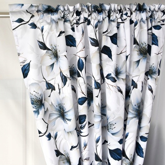 - Zdobienie: Pas z motywem w kwiaty, tasiemki do upięcia zasłon