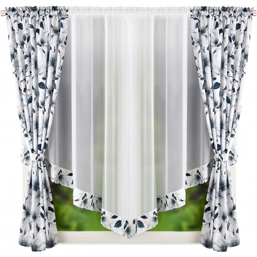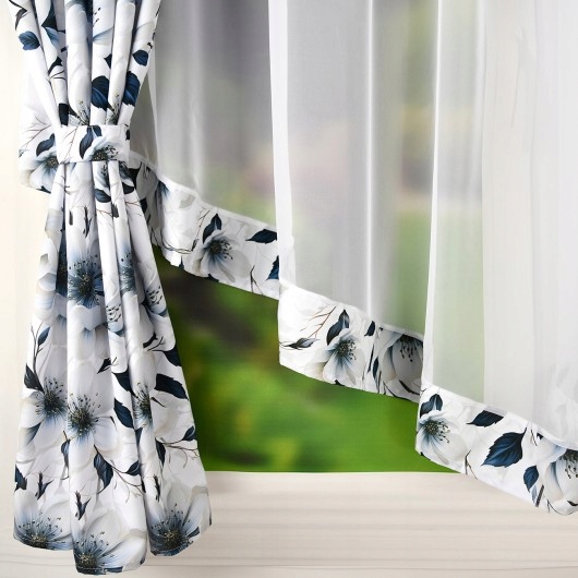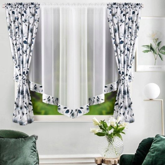 Komplet dwóch zasłon z motywem w kwiaty wraz z firaną z woalu