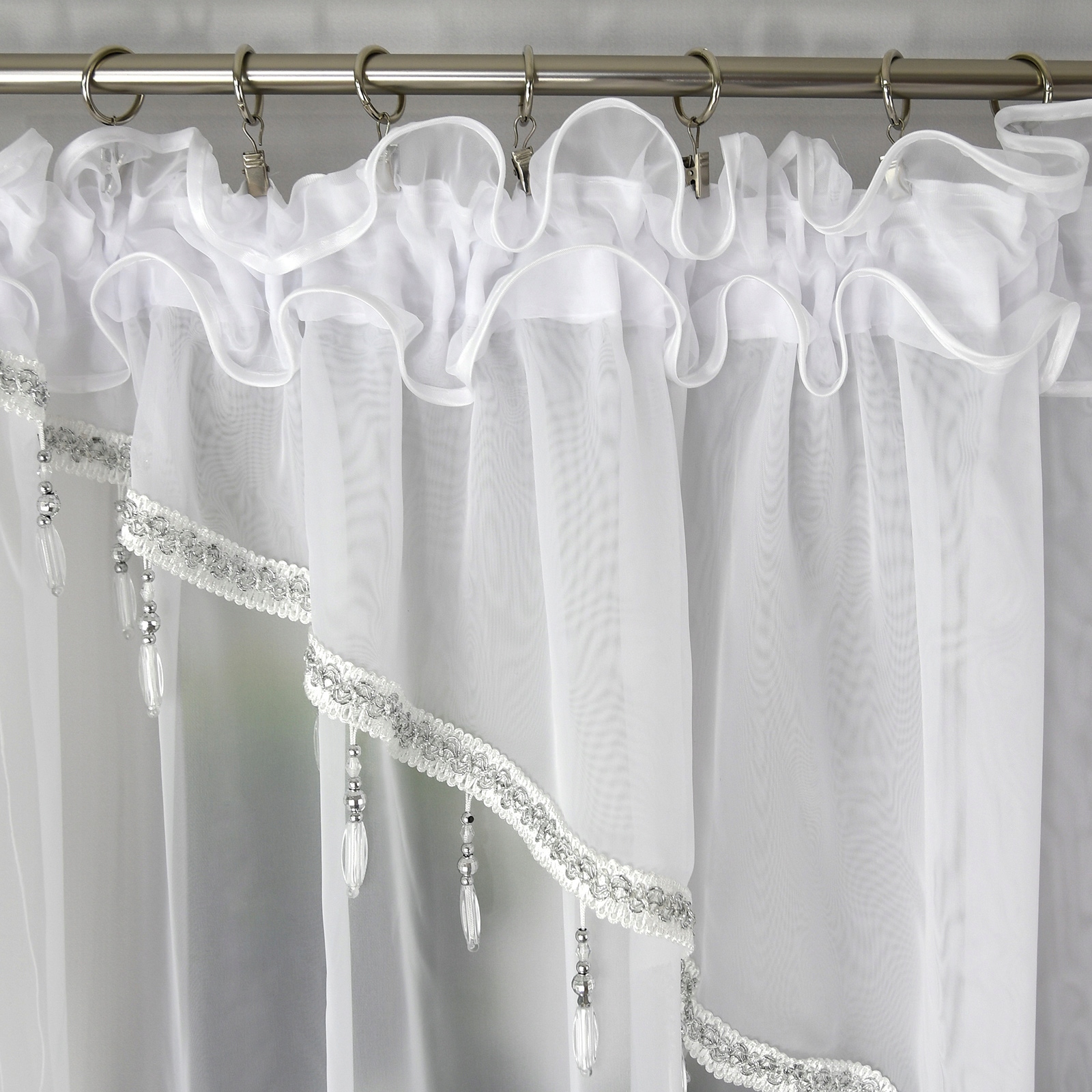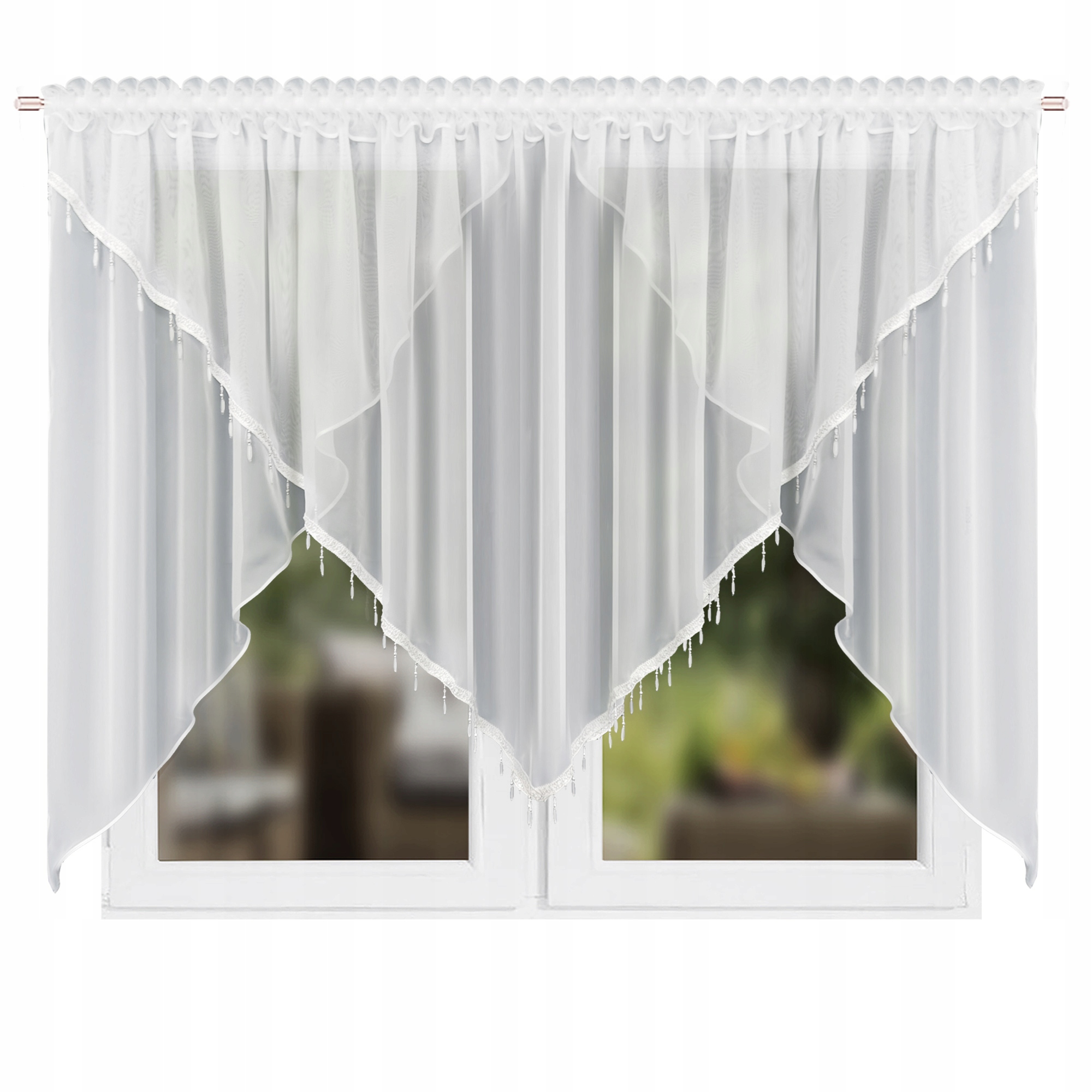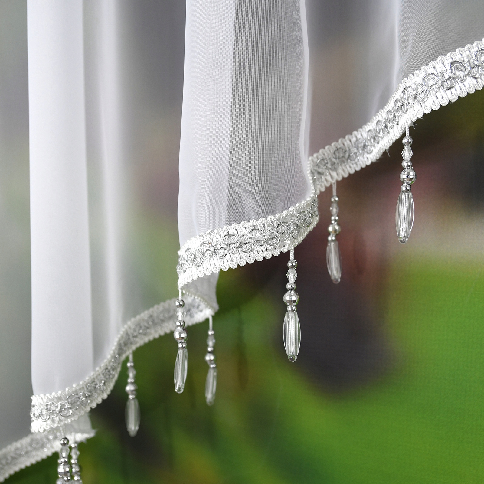 Gotowa firana woalowa, zdobiona koralikami, dwuwarstwowa