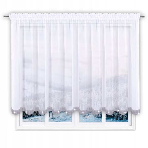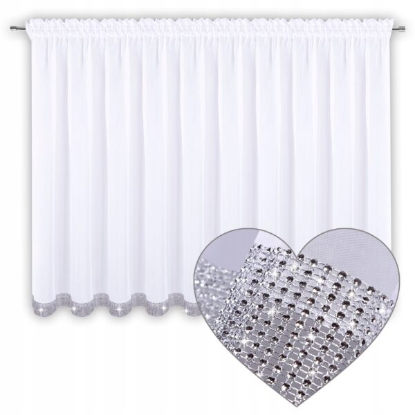 Krótka firana z woalu i z cyrkoniami elegancka 400×120