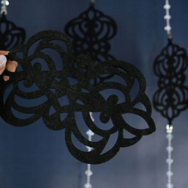 Zawieszka do okna panel ażurowy z filcu z koralikami 110×150